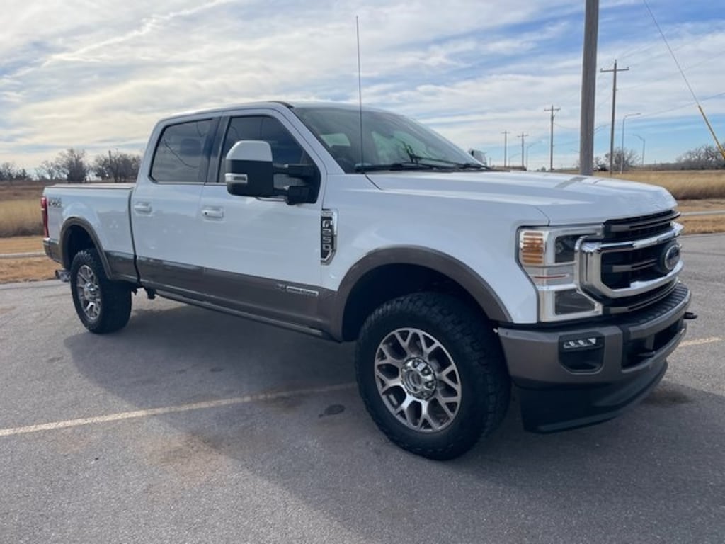 Priced below KBB Fair Purchase Price! Star White Metallic Tri-Coat 2021 Ford F-250SD King Ranch 4WD 10-Speed Automatic Power Stroke 6.7L V8 DI 32V OHV Turbodiesel Local Trade, Back Up Camera, New Tires, 1-Owner, Navigation, Leather, Moon Roof, 4WD, 110V/400W Outlet, Adaptive Cruise Control & Collision Warning, Auto High-beam Headlights, Auto tilt-away steering wheel, Auto-dimming Rear-View mirror, Electronic-Locking w/3.31 Axle Ratio, Flow-Through Console, Front Bucket Seats, Front Center Armrest, FX4 Off-Road Package, Garage door transmitter, Heated door mirrors, Heated front seats, Heated steering wheel, Hill Descent Control, Illuminated running boards, King Ranch Ultimate Package, Leather steering wheel, Multi-Contour Seats, Navigation System, Off-Road Specifically Tuned Shock Absorbers, Order Code 700A, Power door mirrors, Power passenger seat, Power-Deployable Running Boards, PowerScope Trailer Tow Mirrors w/Heat, Quad Beam LED Headlamps & LED Taillamps, Rain sensing wipers, Security system, Split folding rear seat, Tailgate Step & Handle, Telescoping steering wheel, Tilt steering wheel, Twin Panel Power Moonroof, Unique FX4 Off-Road Box Decal, Unique King Ranch Leather 40/Console/40 Front Seats, Upfitter Switches (6), Ventilated front seats, Wheels: 20" Bright Machined Cast Aluminum.