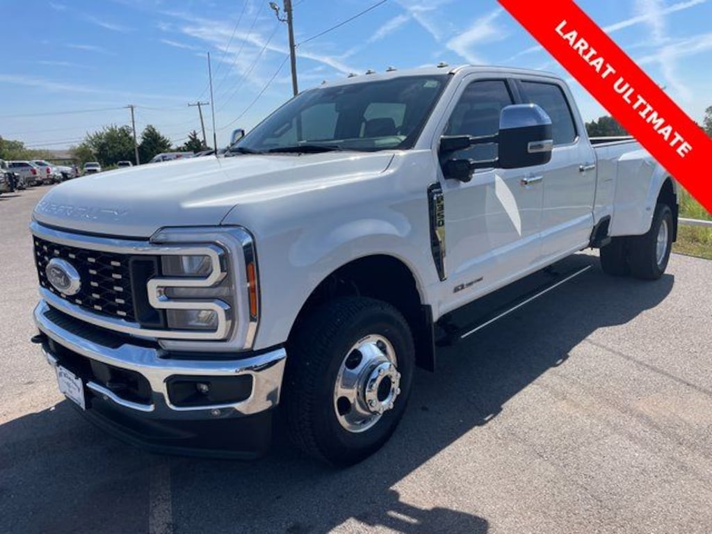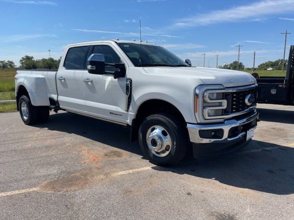 Star White Metallic Tri-Coat 2023 Ford F-350SD Lariat DRW 4WD 10-Speed Automatic Power Stroke 6.7L V8 DI 32V OHV Turbodiesel Local Trade, Back Up Camera, New Tires, 1-Owner, Navigation, Leather, 4WD, 120V/400W Outlet, 17" Forged Polished Aluminum Wheels, 360-Degree Camera Package, 360-Degree Camera System, 4-Way Adjustable Headrests, 4-Wheel Disc Brakes, 48 Gallon Fuel Tank, 5th Wheel/Gooseneck Hitch Prep Package, ABS brakes, All-Weather Floor Mats, Auto High-beam Headlights, Auto tilt-away steering wheel, Automatic temperature control, BLIS w/Cross-Traffic Alert, Brake assist, Chrome Door Handles, Chrome Exhaust Tip, Chrome Front & Rear Bumpers, Chrome Package, Dual front impact airbags, Dual front side impact airbags, Dual rear wheels, Emergency communication system: SYNC 4 911 Assist, Engine Block Heater, Exterior Parking Camera Rear, Flow-Through Console, Front anti-roll bar, Front Bucket Seats, Front dual zone A/C, Front Leather-Trimmed 40/Console/40 Seats, Front Sensing System, Front Splash Guards/Mud Flaps (Pre-Installed), Front Wheel Well Liners (Pre-Installed), Fully automatic headlights, FX4 Off-Road Package, Gooseneck Hitch Kit (Pre-Installed), Head-Up Display, Heated door mirrors, Heated front seats, Heated rear seats, Heated steering wheel, Hill Descent Control, Intelligent Adaptive Cruise Control w/Stop-and-Go, Lane-Keeping System, Lariat Ultimate Package, Leather steering wheel, LED Center High-Mounted Stop Lamp (CHMSL) Camera, Limited Slip w/3.55 Axle Ratio, Low tire pressure warning, Max Recline Seats, Memory seat, Navigation system: Connected Navigation, Off-Road Specifically Tuned Shock Absorbers, Order Code 628A, Overhead airbag, Post-Collision Braking, Power door mirrors, Power driver seat, Power passenger seat, Power-Deployable Running Boards, PowerScope Trailer Tow Mirrors w/Heat, Pre-Collision Assist, Pro Power Onboard - 2kW, Pro Trailer Backup Assist, Pro Trailer Hitch Assist, Radio: B&O Unleashed Sound System by Bang & Olufsen, Rear anti-roll bar, Rear Parking Sensors, Rear window defroster, Remote keyless entry, Remote Start System, Security system, SiriusXM Radio w/360L, Steering wheel memory, Steering wheel mounted audio controls, SYNC 4 w/Enhanced Voice Recognition, Tailgate Step & Handle, Telescoping steering wheel, Tilt steering wheel, Tough Bed Spray-In Bedliner, Tow Technology Package, Unique Chrome Mirror Caps, Unique FX4 Off-Road Box Decal, Upfitter Switches (6), Ventilated front seats, Wireless Charging Pad.